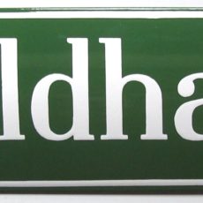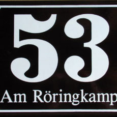 Das Gemeindeschild mit Gemeindewappen und der Textzeile ist ein Blickfang für das Haus der Gemeinde-Verwaltung. Das Gemeindeschild wurde umgekantet. Die Löcher sind in der Umkantung eingebracht, so dass es auf eine Rückseitenplatte montiert werden kann. Dadurch stören keine Schrauben die Ansicht der Vorderseite.