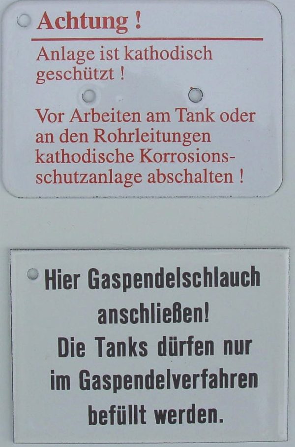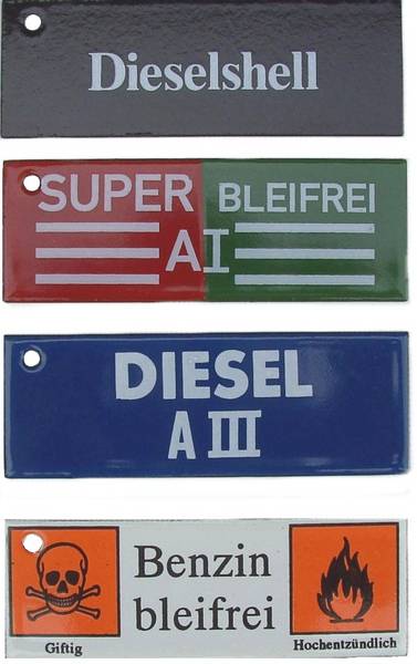 Diese emaillierten Tankschilder werden für die Mineralölindustrie, als Tankstellenbeschilderung und für die chemische Industrie hergestellt.